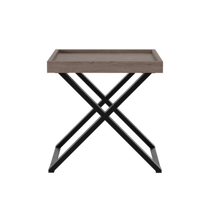 Pershore End Table | Aged Oak with Crossed Black Metal Legs