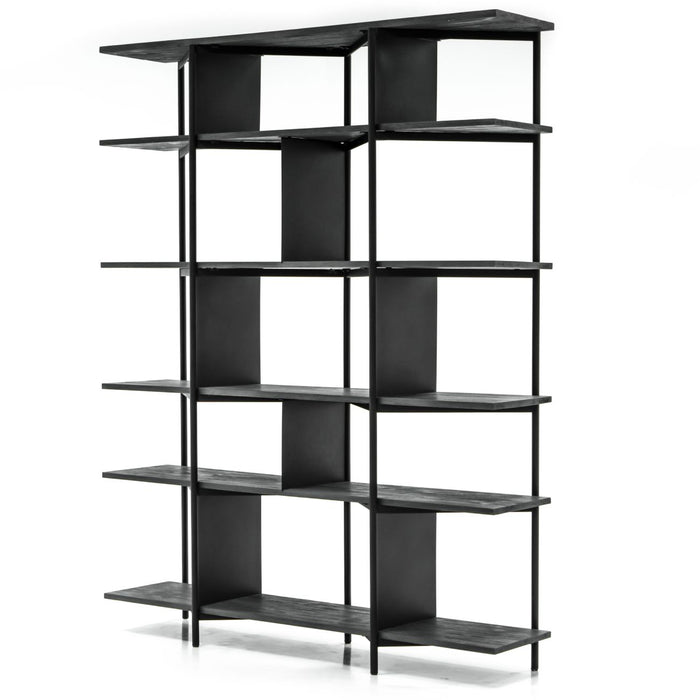 Introducing the Bronks Bookshelf, a versatile storage unit for your home. Crafted from solid Acacia Wood with a Tundra Grey stain, the contrasting metal and wooden finishes bring a touch of modern elegance to any room. With six shelves, this sturdy storage unit is perfect for your home office or living room, seamlessly blending style with functionality. Supplied fully assembled.