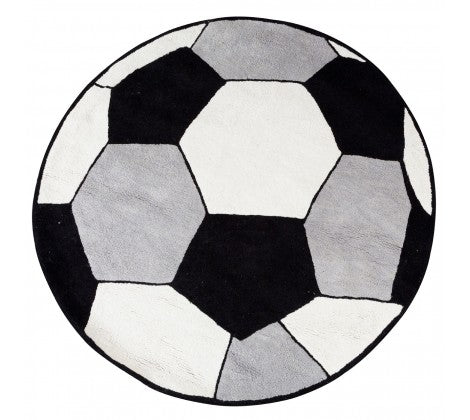 Ideal for all football fans, the kids rug is designed in the shape of a football and will ensure comfort under feet. Made from 100% cotton, the hand tufted rug is durable and will provide support when walking on. The classic football design from the 1970's is ideal for a sporty room, and with its black, white and grey design, it will stand out in any setting. A fantastic way to keep the floor free from scratches and marks, the kids football rug will make a practical addition to their bedroom, while complementing most decors.
