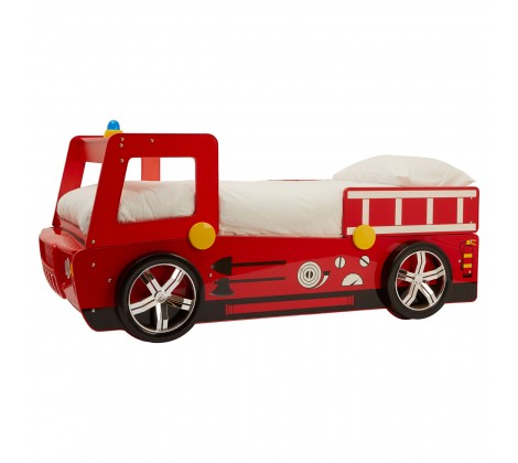This children's bed is designed to resemble a fire engine. Vibrant red in colour, the durable MDF frame features fun fire fighter themed motifs including a ladder, a hose and a fire extinguisher. The front end of the bed boasts a cabin frame with siren light, to make aspiring fire fighters feel as though they are really in a fire engine.