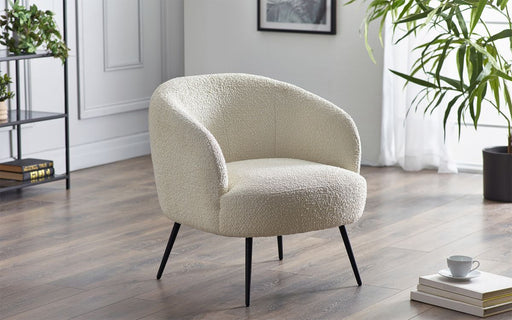 The Luna chair adds a stylish yet cosy touch to your home. Upholstered in soft, textured boucle fabric, it invites you to sink in and relax, whethe...