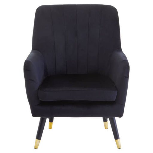 • Black Velvet Scalloped Chair with Black Wood and Gold Legs