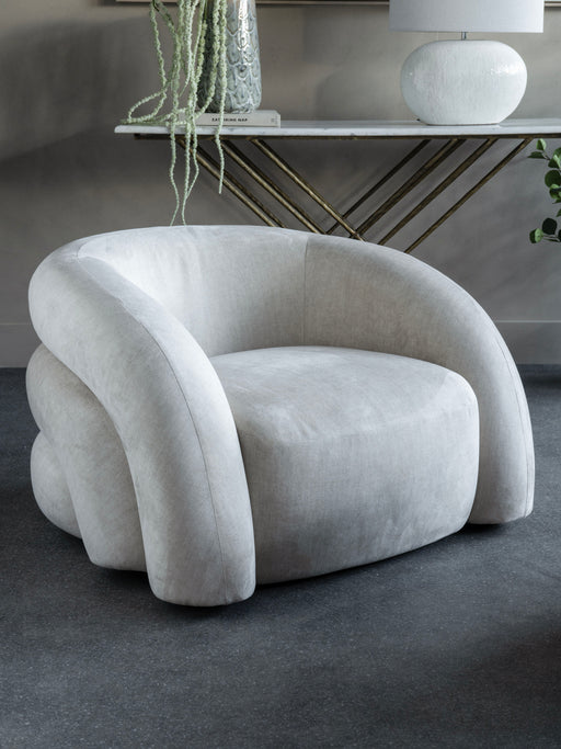 chairEnhance your home decor with the Casa Upholstered Curved Snug Chair in Cream, a signature piece from Libra Interiors that embodies luxury, sty...