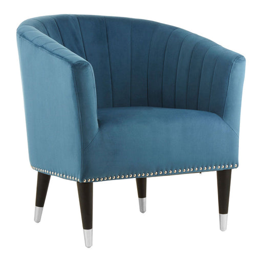 Aqua Blue Velvet Channel Tufting Foam Cushioned Armchair with Gold Legs