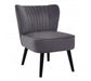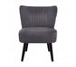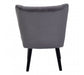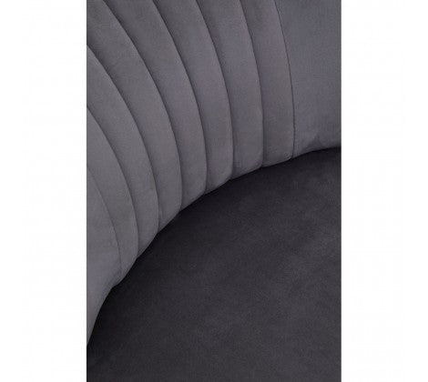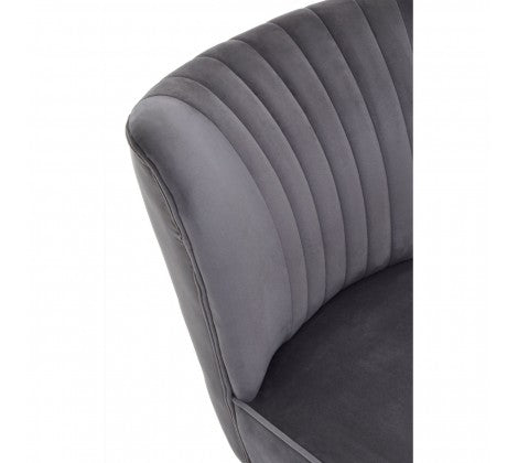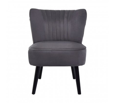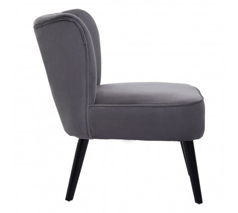 This chair with flared back and subtle angular construction will bring a touch of classic sophistication to home decor. Upholstered in grey velvet, this chair has a comfortable seat in generous foam padding and tapered back in minimal vertical stitching. The black finish splayed legs enhance the elegance of the low key design.