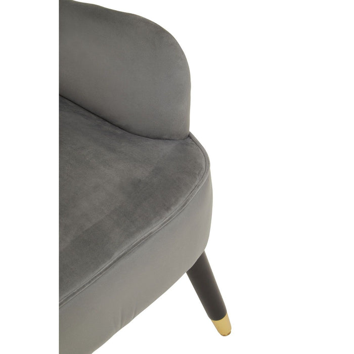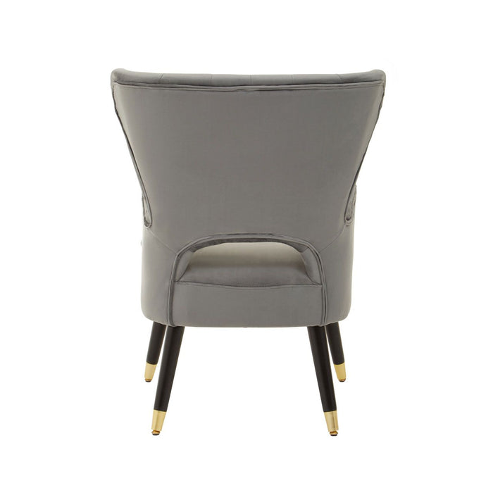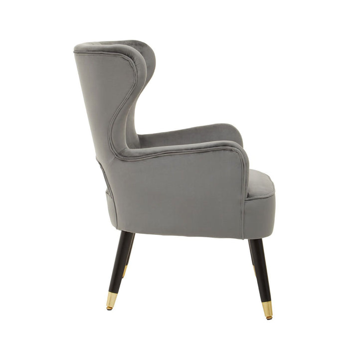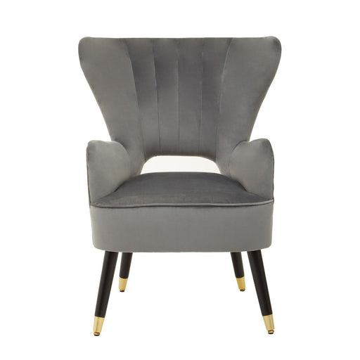 Exhibiting boutique luxury, this lounge chair will make a statement in modern themed living spaces. This foam-padded chair features channel detail and creates a chic statement to a variety of decors. Upholstered in grey velvet, this armchair has a wingback with a cutout backrest. The angular rubberwood legs will contribute to the mid-century modern style.