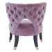 The Villi feature chair makes a chic impression with its tranquil, lilac coloured upholstery. The curving backrest features a button tufted finish, adding a dash of distinction to this boutique hotel-style chair. Its seat is wide and plump to produce a comfortable sitting experience. The legs splay outwards, complementing the arcing backrest. Made from wood, their black finish complements the soft lilac fabric.