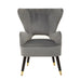 Exhibiting boutique luxury, this lounge chair will make a statement in modern themed living spaces. This foam-padded chair features channel detail and creates a chic statement to a variety of decors. Upholstered in grey velvet, this armchair has a wingback with a cutout backrest. The angular rubberwood legs will contribute to the mid-century modern style.