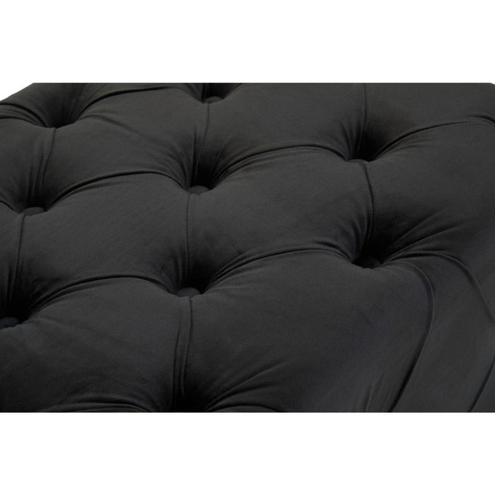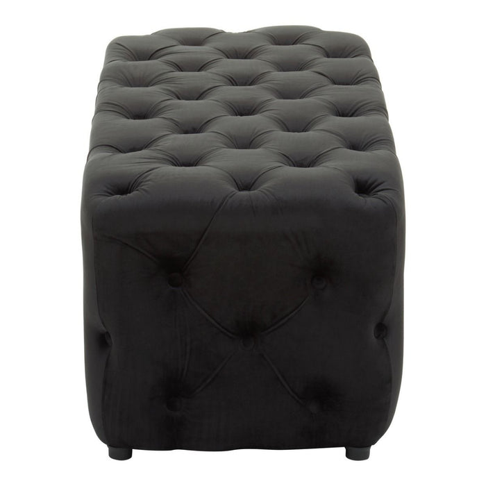 Sumptuously padded with soft foam for added comfort, this bench will add a chic statement to the living area. Featuring timeless elegance, this traditional button-tufted bench is upholstered with black velvet. Ensuring a luxurious seating experience, this versatile bench is well-suited to an array of contemporary styles.