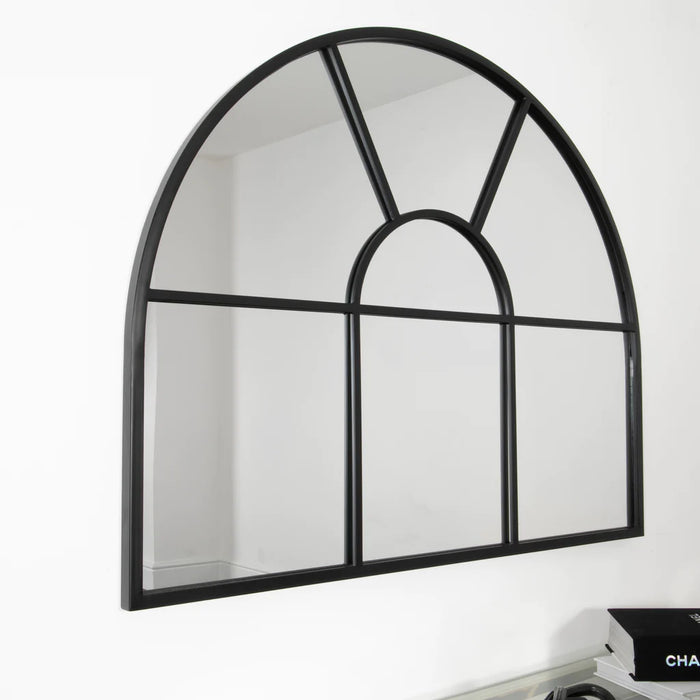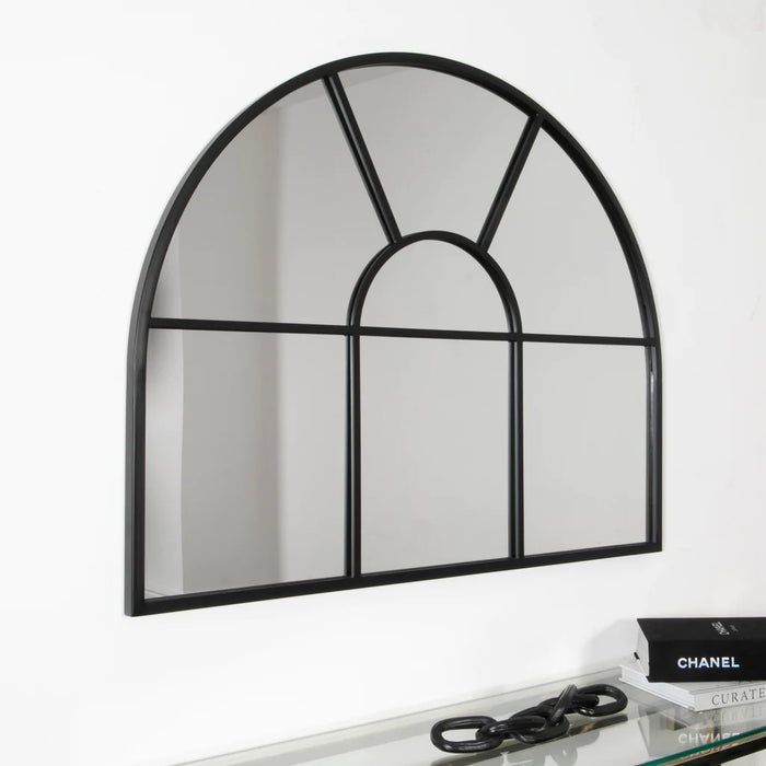 This stunning arched mirror was designed with windows in mind, it's thick lines of metal and smooth arch creates a modern look. This mirror style is on trend and looks fantastic above a console table or mantle.
