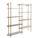 Striking a balance between functionality and sculptural elegance, the Belvedere Wall Shelving Unit features a sophisticated combination of Banswara marble and brown tinted glass within its champagne gold metal frame. The open design allows for light and space to flow freely, while offering ample room for displaying books, decorative objects, or curated collections. The Unit is floor standing and then attaches to a wall and suits dining rooms, living rooms or hallways. Part of the wider Belvedere range, it can be styled alone as a statement feature or layered with complementary furniture for a cohesive, elevated look. Dimensions: W174 x D42 x H181 cm