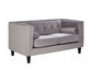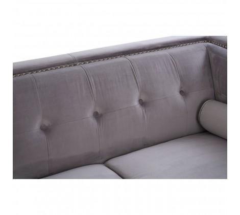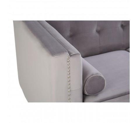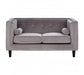 Featuring a button tufted backrest, the Felisa 2 seat grey velvet sofa has sumptuous seat cushions for optimum sitting comfort. The stud detail outline creates a glam appeal giving the sofa a touch of classic charm.