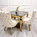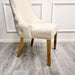 Our Kensington Velvet Dining Chair features Gold stud detailing, our signature gold legs and a super luxurious deep buttoned back.