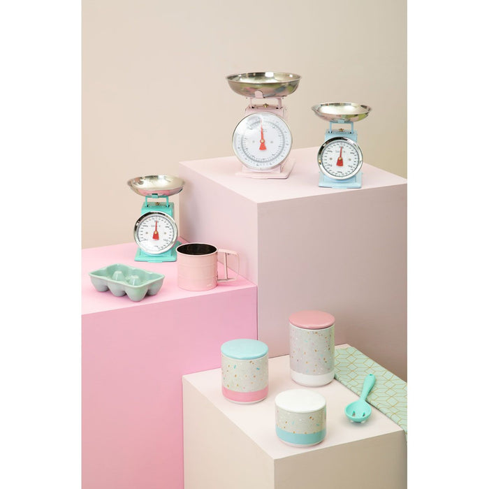 Featuring a retro design, this kitchen scale will allow budding chefs and cooks to make food with precision. This kitchen scale ensures the weight of ingredients is ideal for cooking. Made from iron steel in a pink finish, this kitchen scale is topped with a bowl and complemented with an analogue dial featuring a measuring capacity of 5kg.