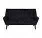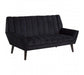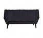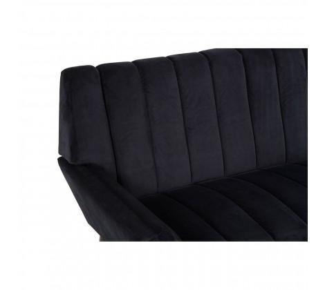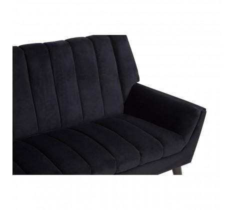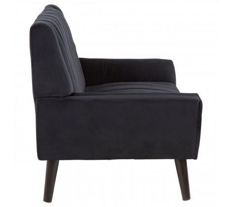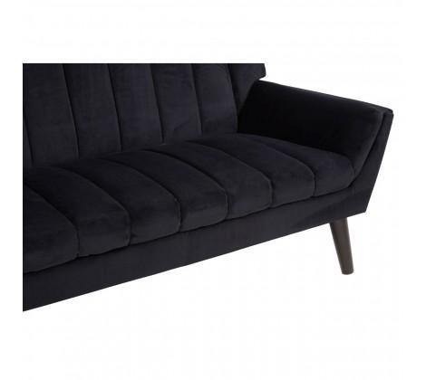 With tapered sides and splayed legs, this three-seater black velvet sofa has a simple and modern silhouette, ideal for a Scandi themed living room. Subtle channel detail adorns the back and seat cushions on the sofa and adds to the overall streamlined and modern look.