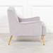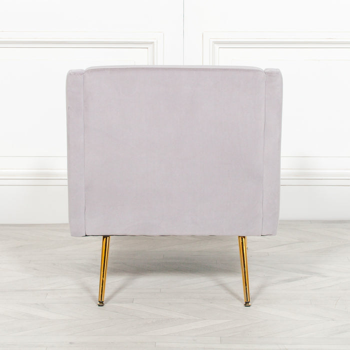 GREY VELVET WITH METAL GOLD PLATED LEGS (THE GOLD PLATED LEGS MAY HAVE VARIOUS SMALL MARKS OR DIMPLES IN SURFACE FROM MANUFACTURING PROCCESS) |