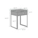 One drawer black industrial style bedside table, faux concrete top, solid oak drawer front, distressed slate grey oak, slate grey metal frame, industrial metal handle