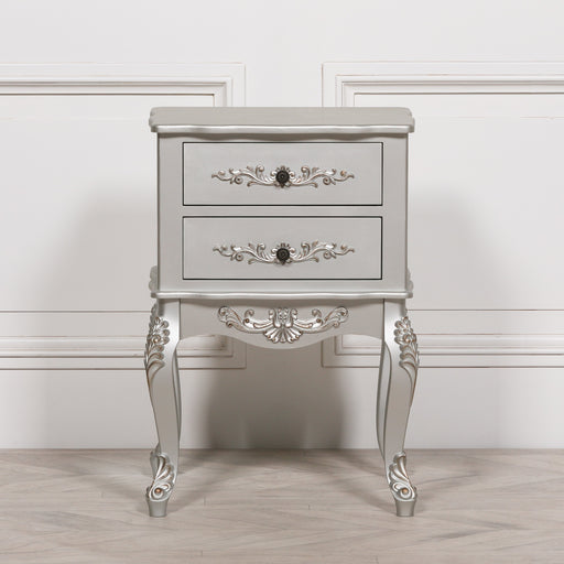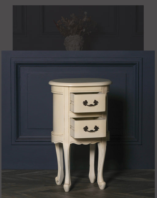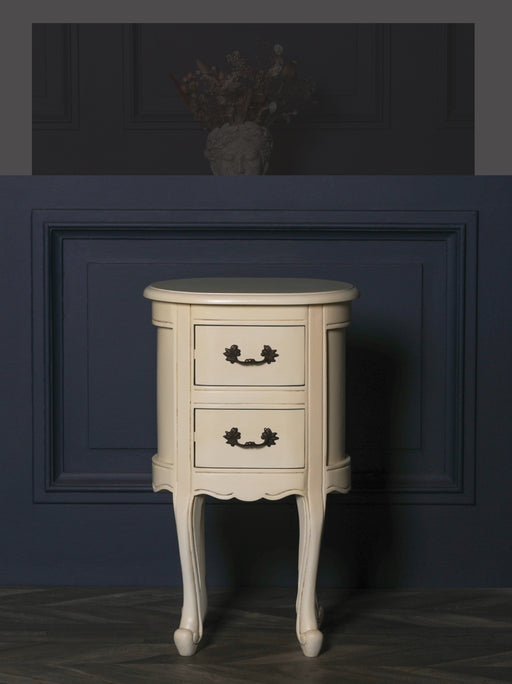Aged Ivory Oval Bedside Table With 2 Drawers