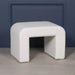 Boucle fabric upholstered arch shaped stool in a white fabric colour finish.