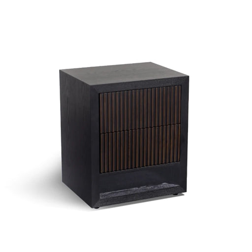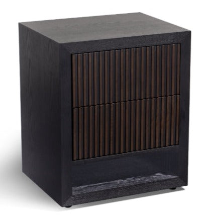 Original price £369.99 - Original price £369.99Original price£369.99£369.99 - £369.99Current price £369.99THE ABBERLEY COLLECTION Two drawer brown bedside table in brown stained solid oak and oak veneer, curved front, curved legs, cut lines, visible g...