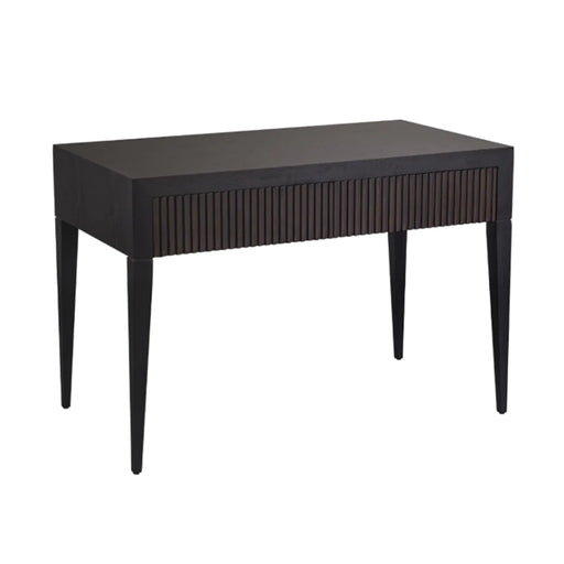 Original price £850.00Original price £850.00 - Original price £850.00Original price £850.00Current price £764.99£764.99 - £764.99Current price £764.99THE ABBERLEY COLLECTION Two drawer desk in brown stained solid oak and oak veneer, curved front, curved legs, cut lines, visible grain, metal run...