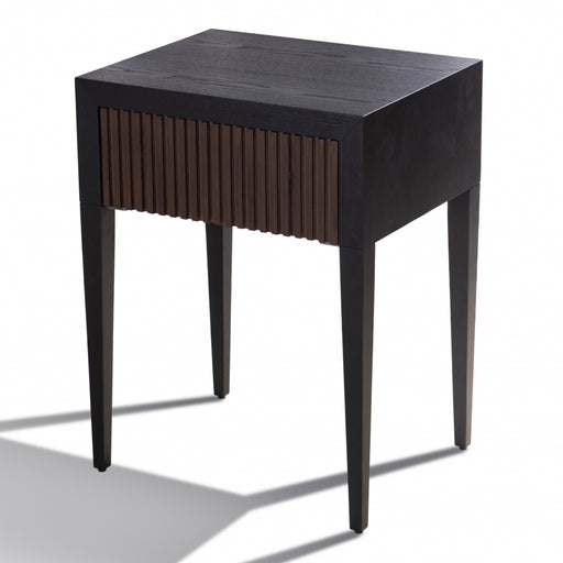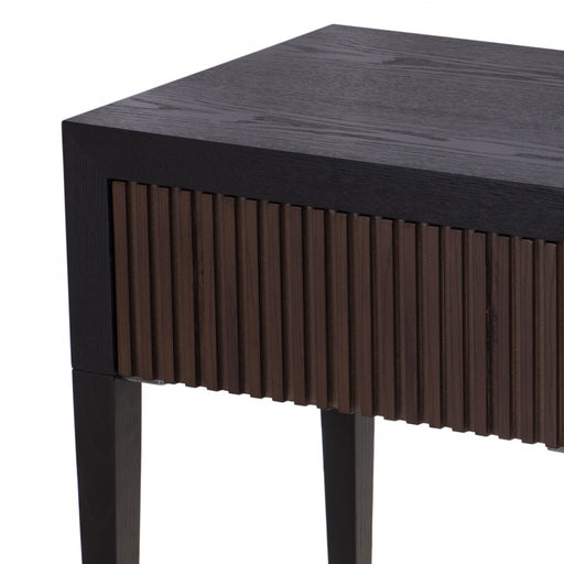 Original price £309.99 - Original price £309.99Original price£309.99£309.99 - £309.99Current price £309.99THE ABBERLEY COLLECTION One drawer brown bedside table with shelf, in dark stained solid oak and oak veneer, curved front, curved legs, cut lines...