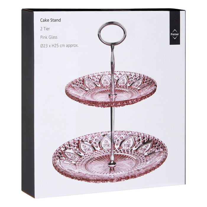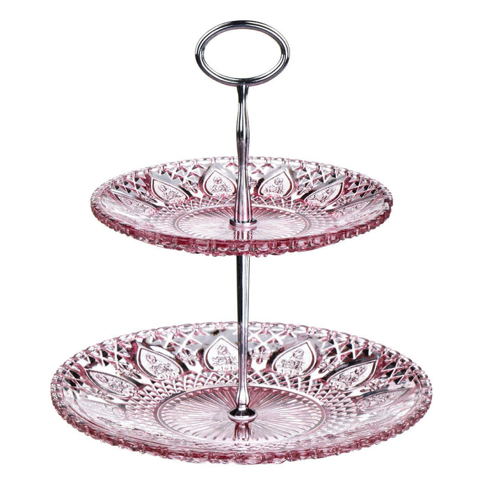Pink Glass Cake Stand with 2 Tiers
