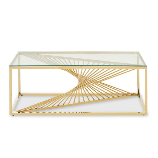 Inverted Prism Base Gold Coffee Table with Black Tempered Glass Top
