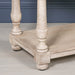 Acacia wooden console table with lower storage shelf and single drawer. Finished with vintage brass style handles.