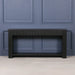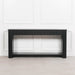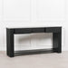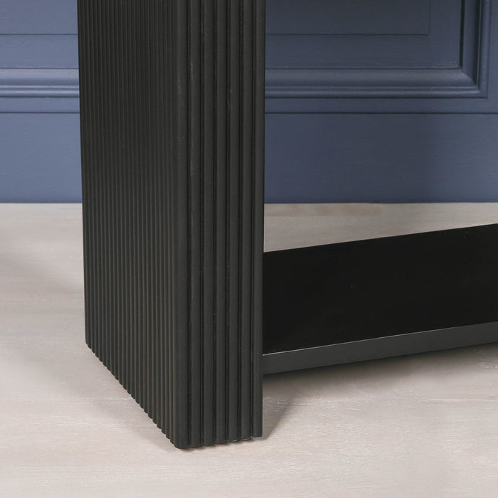 Hand-crafted fluted acacia wooden console with 3 drawers and lower shelf in a black painted finish.