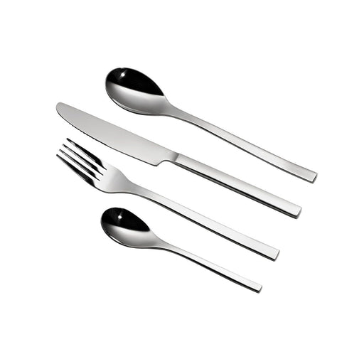 • Flat Modern Design Polished Stainless Steel 16 Pc Silver Cutlery Set
