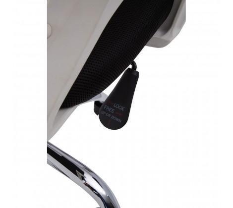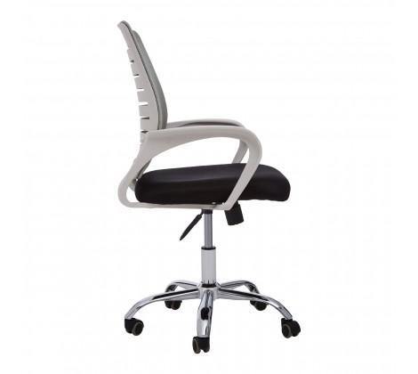 This grey office chair on wheels has a durable, comfortable nylon seat, controllable tilt tension adjustment knob and a lock mechanism for fixing chair position. It is ideal for working from home and in the office.