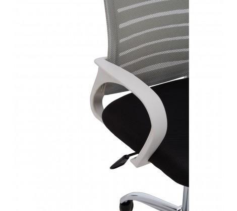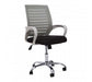 This comfortable grey office chair is built with flexible black armrests and 5-wheel rolling base.