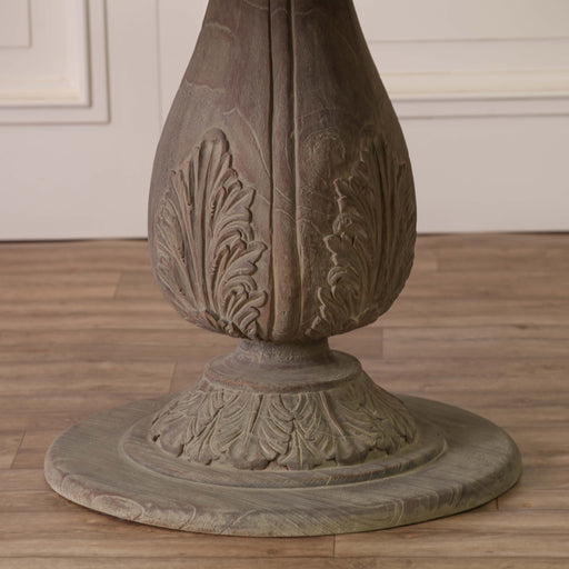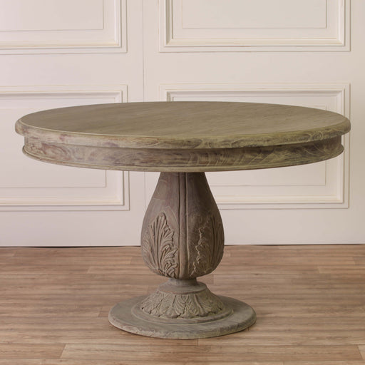 Original price £1,229.00 - Original price £1,229.00Original price£1,229.00£1,229.00 - £1,229.00Current price £1,229.00Round pedestal dining table hand-crafted from white cedar in a rustic finish with intricately carved details along the base and splayed feet. Di...