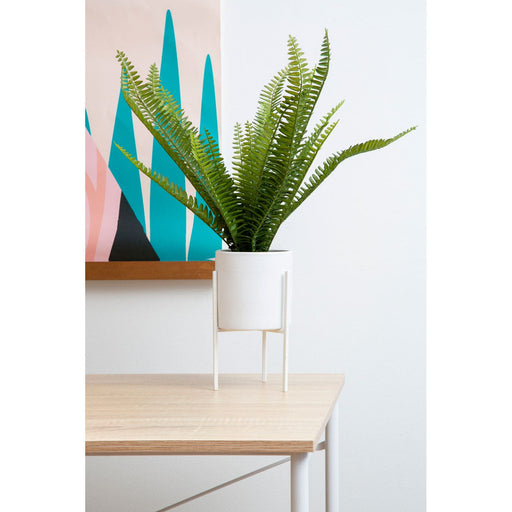 Fiori fern with white ceramic face pot. This Fiori will add a soothing accent to a wide range of decors with its botanical charm.H35 x W35 x D40cm