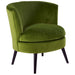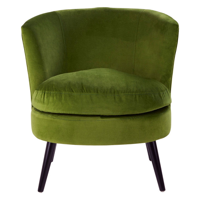 The Corra side table is a luxury accent piece that fuses earthy green and rich gold tones. The round top is made from solid marble, coloured green with darker veining that adds pattern. The legs are made from iron and have a warm, matte gold finish that complements the green. Their minimal design adds to its unimposing vibe, with straight lines that converge at the base to counterpoint the circular top.