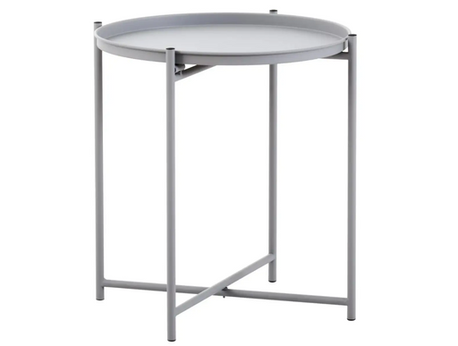 Round Tray Style Side Table with Grey Top and Grey Legs