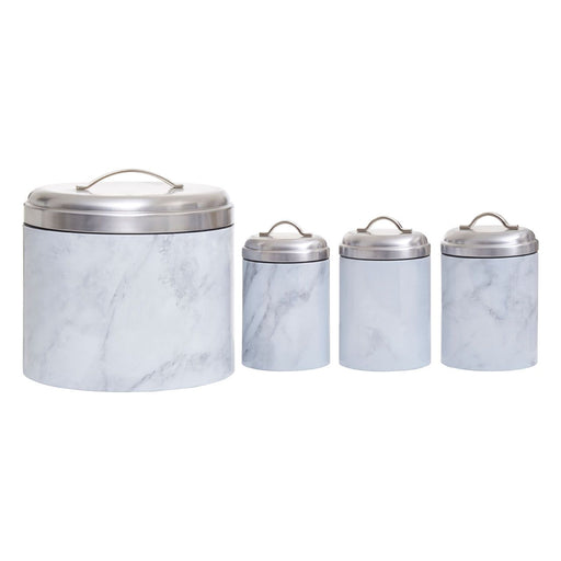 • White/Grey Marble Effect Storage Tin Set - 4 Pc