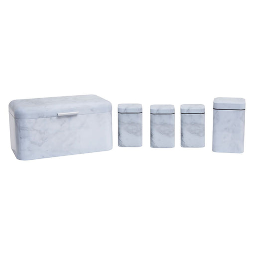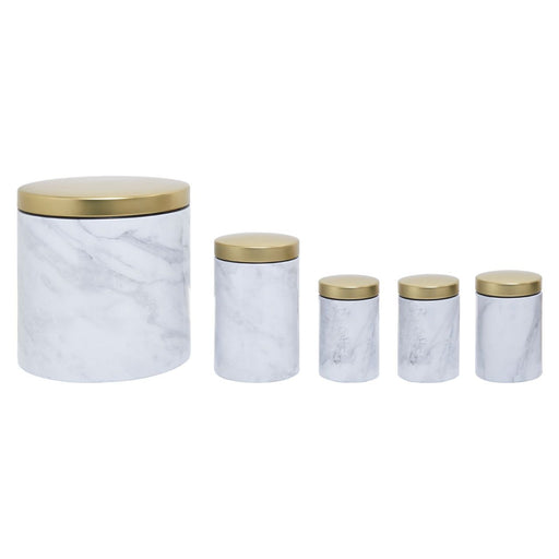 • White/Grey Marble Effect Storage Tin Set - 5 Pc