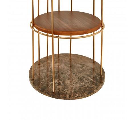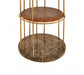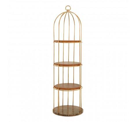 The bird cage design bookshelf has a stainless steel frame crafted from slender bars and is given a rich rose gold finish. It features three faux marble tiers, providing ample space for displaying books and other small objects. The rounded design of shelves complements elegant curves of the frame while its open design gives it a light and airy feel.