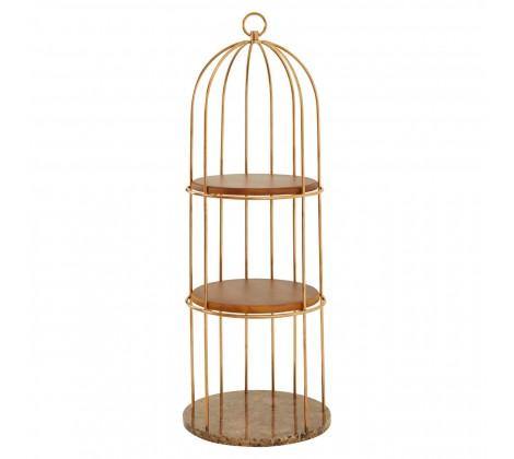The bird cage design bookshelf has a stainless steel frame crafted from slender bars and is given a rich rose gold finish. It features three faux marble tiers, providing ample space for displaying books and other small objects. The rounded design of shelves complements elegant curves of the frame while its open design gives it a light and airy feel.