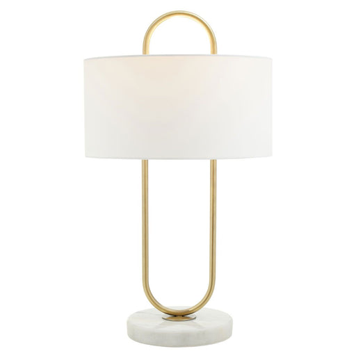 The Nolan table lamp exhibits modern art with its sleek structure and luxe style. Featuring an angled brass finish metal frame with a white fabric ...