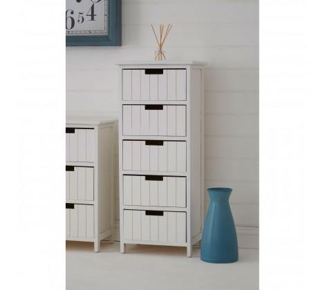 New England White 5 Drawer Tall Chest - Modern Home Interiors