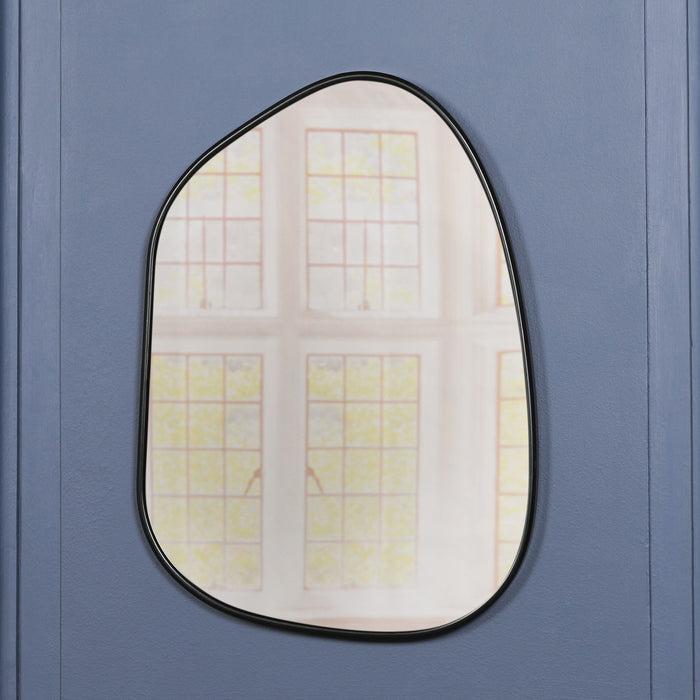 Black painted framed asymmetrical shaped metal framed wall mirror