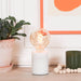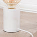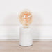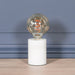 Industrial style table lamp finished in solid white marble. The lamp has in-line cable toggle on/off switch with white braided electrical cord.