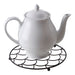 Decorative and functional, this trivet features an art deco inspired sequence and makes a stylish addition for kitchen or dining table. Minimal and elegant, the Vertex Deco matte black trivet protects dinner tabletop or kitchen counter from burns of hot pots and pans. The ball feet ensure stability while its wire design helps in air circulation to release cookware’s heat quickly.