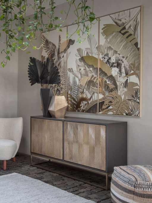 Bredon Grey Faux Dark Concrete Dining Table Antique Brass Trim