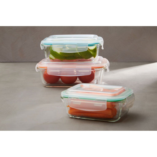 Glass Airtight Silicone Seal Premium Food Storage Container For Complete Food Preservation - Set of 3 Multi Coloured