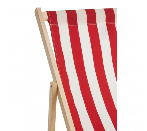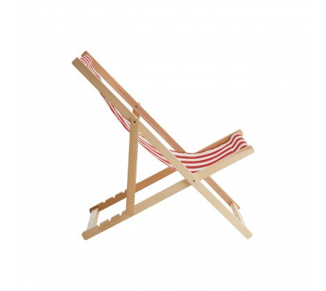 This chair has a tough, solid hardwood frame which has a natural colour that gives it a fresh and light appeal. Notches in the rear legs allow the seating position to be adjusted from a lazy recline to a more upright style. The red and white striped sling means that it adds a bright and breezy accent to the patio and garden.