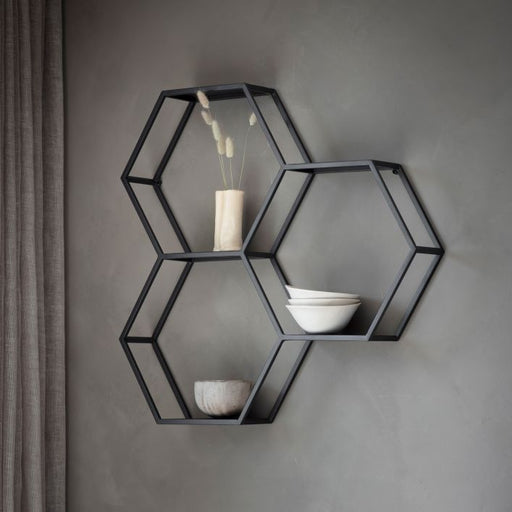 Original price £96.99 - Original price £96.99Original price£96.99£96.99 - £96.99Current price £96.99Black metal wired five compartment wall shelf in an industrial style. (decorative items not included) Dimensions W50.5 x D19.5 x H70.5 cm (open...